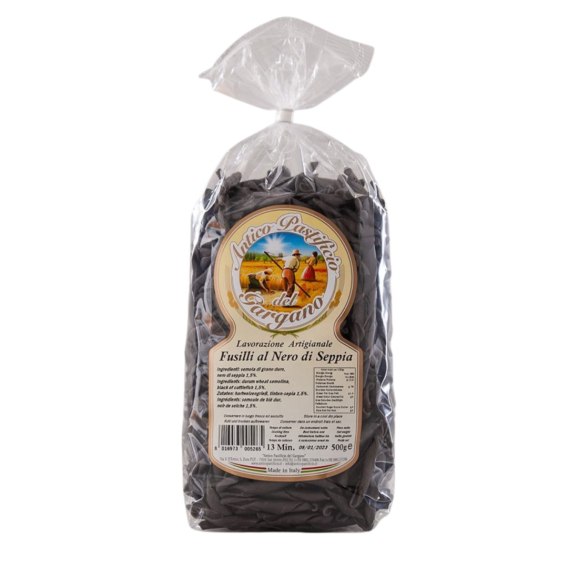 - Antico Pastificio Makaron Fusilli z Atramentem z Kałamarnicy 500g to wyjątkowy włoski makaron o intensywnym czarnym kolorze i delikatnym, morskich aromacie. Wykonany z najwyższej jakości semoliny z pszenicy durum z dodatkiem naturalnego atramentu z kałamarnicy, który nadaje mu unikalny smak i barwę. Produkowany tradycyjną metodą z matryc z brązu oraz powolnym suszeniem w niskiej temperaturze, co gwarantuje idealną strukturę i konsystencję al dente. Doskonały do dań z owocami morza, sosów śmietanowych i lekkich kompozycji kuchni włoskiej. Produkt naturalny, bez dodatków i konserwantów, wyprodukowany we Włoszech.