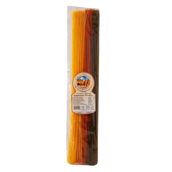 - Antico Pastificio Makaron Spaghetti Maxi 3 Kolory Włoski 500g to efektowny, rzemieślniczy makaron łączący tradycyjne włoskie rzemiosło z kolorową prezentacją. Wykonany z semoliny z pszenicy durum, z dodatkiem naturalnych składników - szpinaku, pomidora i kurkumy - które nadają mu zielony, czerwony i żółty odcień. Grubsza forma spaghetti „maxi" zapewnia wyrazistą strukturę i wyjątkową konsystencję al dente. Idealny do lekkich sosów warzywnych, serowych, a także dań wegetariańskich. Produkowany we Włoszech tradycyjną metodą, z użyciem matryc z brązu i powolnego suszenia. Produkt naturalny, bez sztucznych barwników i konserwantów.