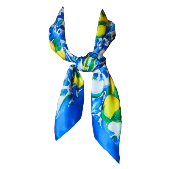 APASZKA CHUSTA DAMSKA NA GŁOWĘ POD SZYJĘ Satynowa CYTRYNY Wzór 6 Włochy