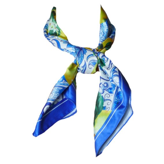 APASZKA CHUSTA DAMSKA NA GŁOWĘ POD SZYJĘ Satynowa CYTRYNY Wzór 9 Włochy