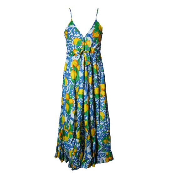 SUKIENKA MAXI LETNIA Ramiączka w CYTRYNY 100% Bawełna Wzór 1 Włochy